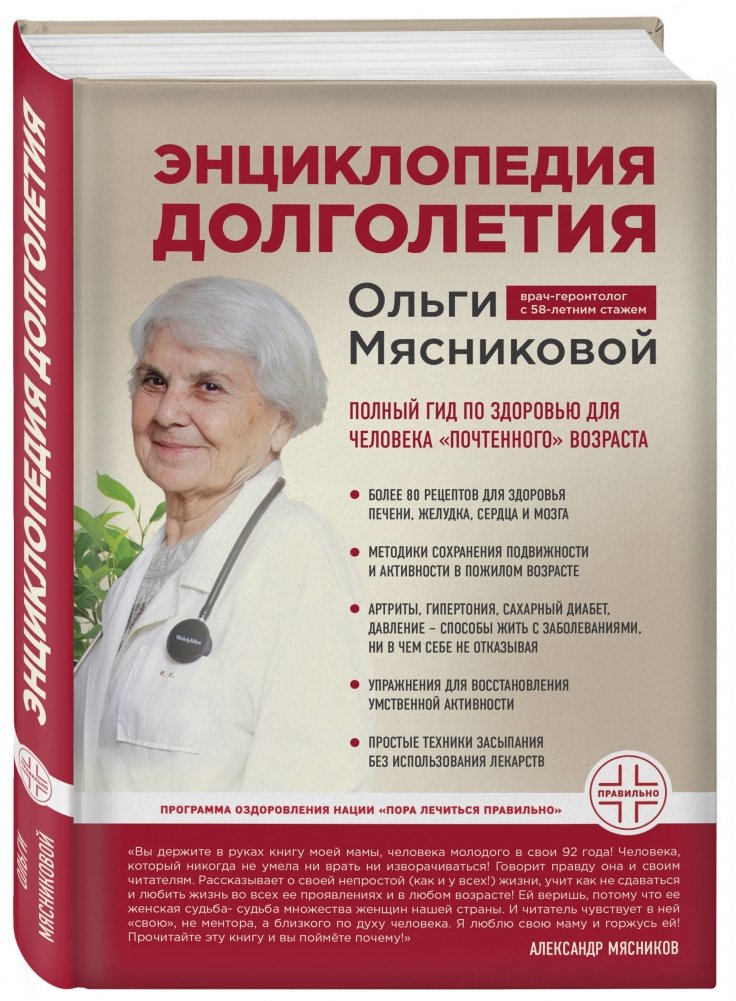 Ольга Мясникова - врач-геронтолог с 50-летним стажем - легко и с юмором рассказывает о том, как в почтенном возрасте чувствовать себя молодой и здоровой. На примерах из собственной жизни и жизни своих пациентов, она делится правилами здоровой и долгой жизни: