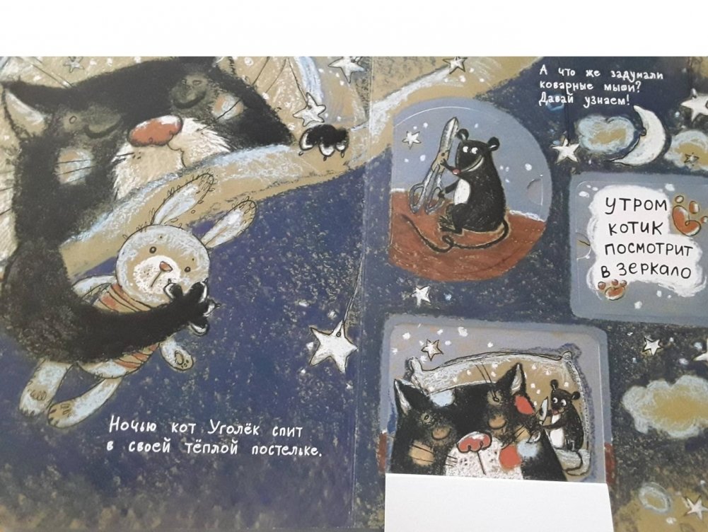 Если мыши и кот встретились под одной крышей, ничего хорошего из этого не выйдет! Ведь они не могут жить дружно - это давно известно. В этой книжке великолепный кот Уголёк и несколько коварных мышей приготовили друг другу самые настоящие испытания на прочность! Какие? Ваш малыш узнает это, когда откроет все окошки и рассмотрит картинки. Он точно будет в восторге от уморительно смешных героев и их весёлых проделок!
