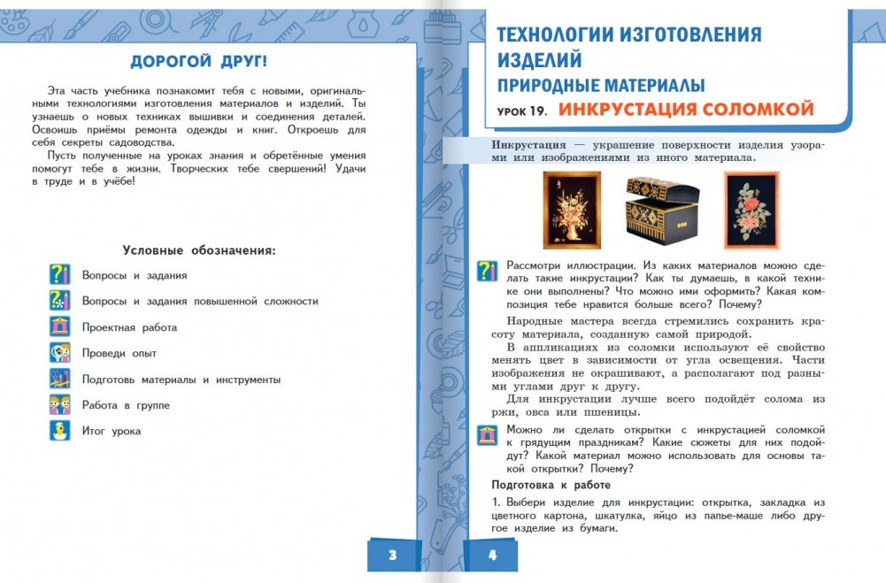 Учебник для 4 класса знакомит с новыми технологическими понятиями, новыми видами материалов и инструментов. Школьники приобретают навыки обработки материалов, исследуют и сравнивают их свойства. Каждый урок настраивает учащихся на проектную деятельность.