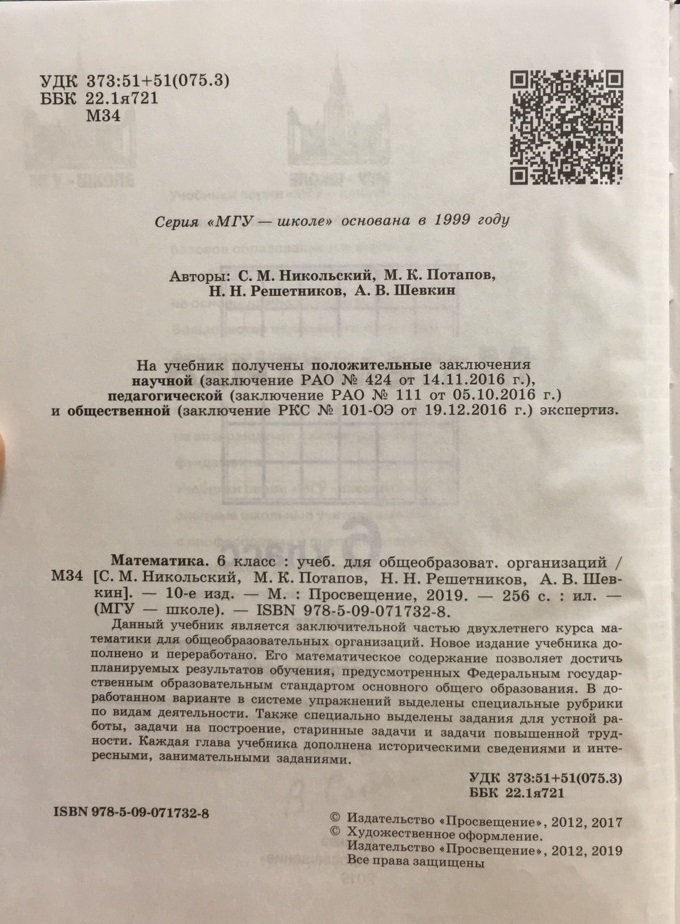 Учебник "Математика. 6 класс", является частью завершённой предметной линии учебников по математике для учащихся 5—6 классов общеобразовательных организаций. В каждом пункте учебника после теоретического материала имеются вопросы для самоконтроля в виде упражнений для устной работы, способствующие поиску и выделению необходимой информации, рефлексии способов деятельности. Система задач, разбитых на рубрики, ориентирующие на различные формы деятельности (Доказываем, Исследуем вместе, Придумываем задачи и др.), помогает ученикам ориентироваться в способах деятельности. В замечаниях к учебному тексту часто сообщается о том, что будет изучено в дальнейшем. Использование задач на доказательство, заданий на поиск информации в учебной литературе и Интернете помогает формированию устойчивых познавательных интересов и профессиональных предпочтений.