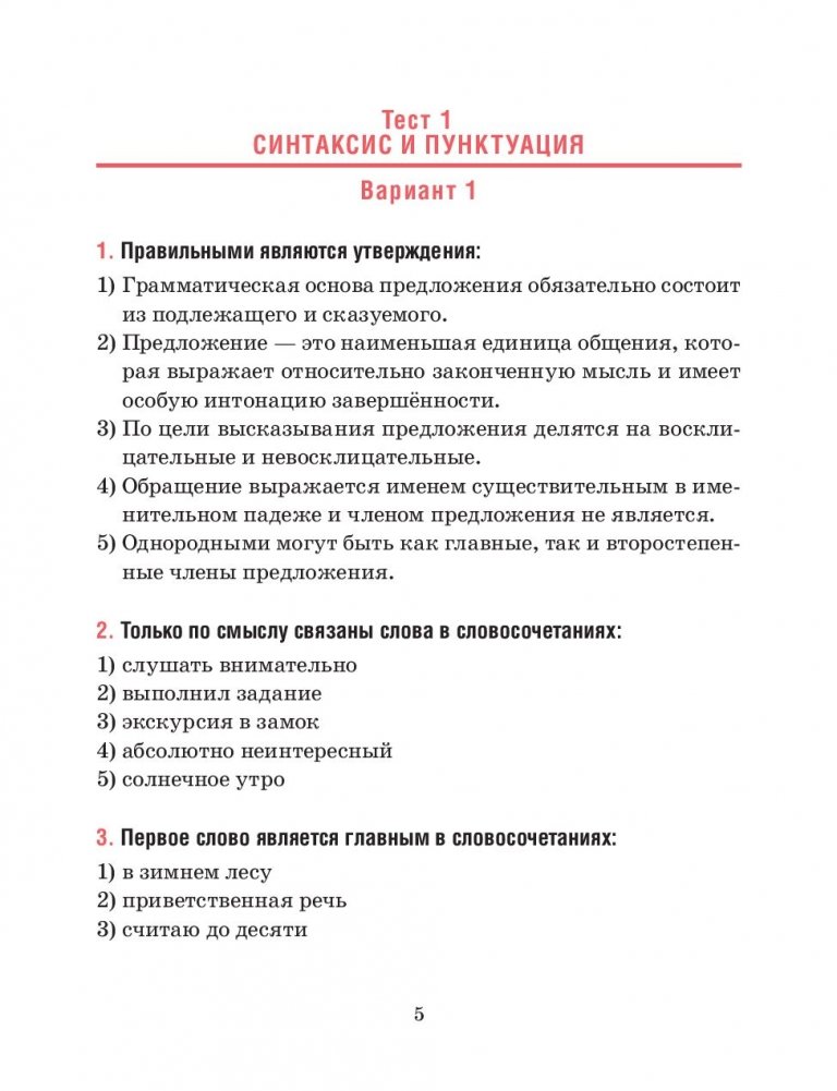 Пособие представляет собой сборник тестовых заданий по основным разделам курса русского языка, изучаемого в 5 классе. Тесты составлены в соответствии с учебной программой и учебником для учреждений общего среднего образования. Итоговый тест содержит задания на повторение материала, пройденного за весь учебный год.