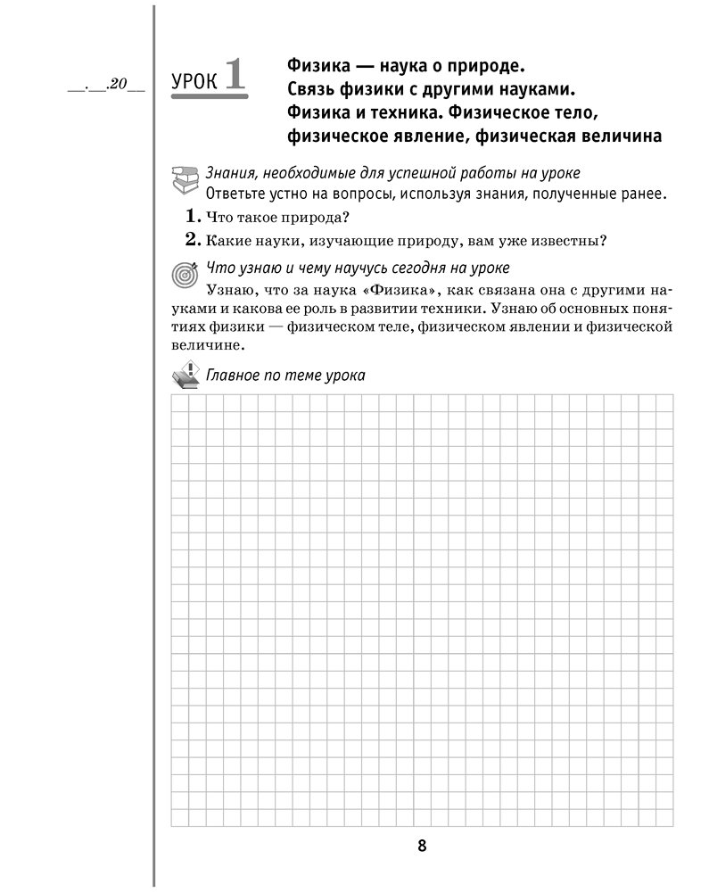 Рабочая тетрадь по физике для 7 класса. Часть 1
