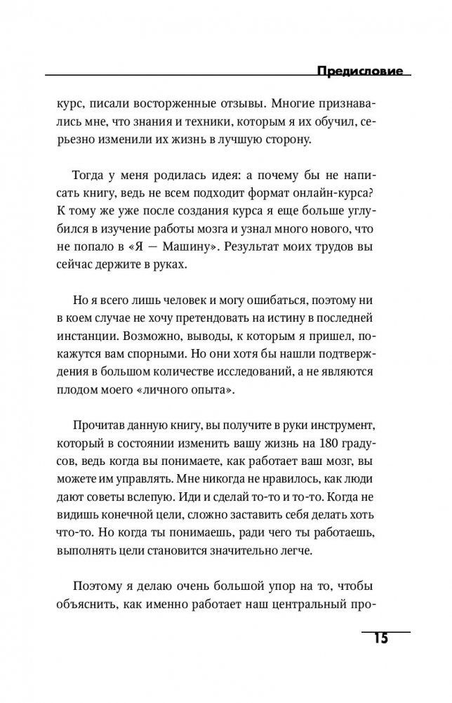 Прочитав эту книгу, вы получите в руки инструмент, который в состоянии изменить вашу жизнь на 180 градусов, ведь когда вы понимаете механизмы работы мозга, вы можете им управлять.