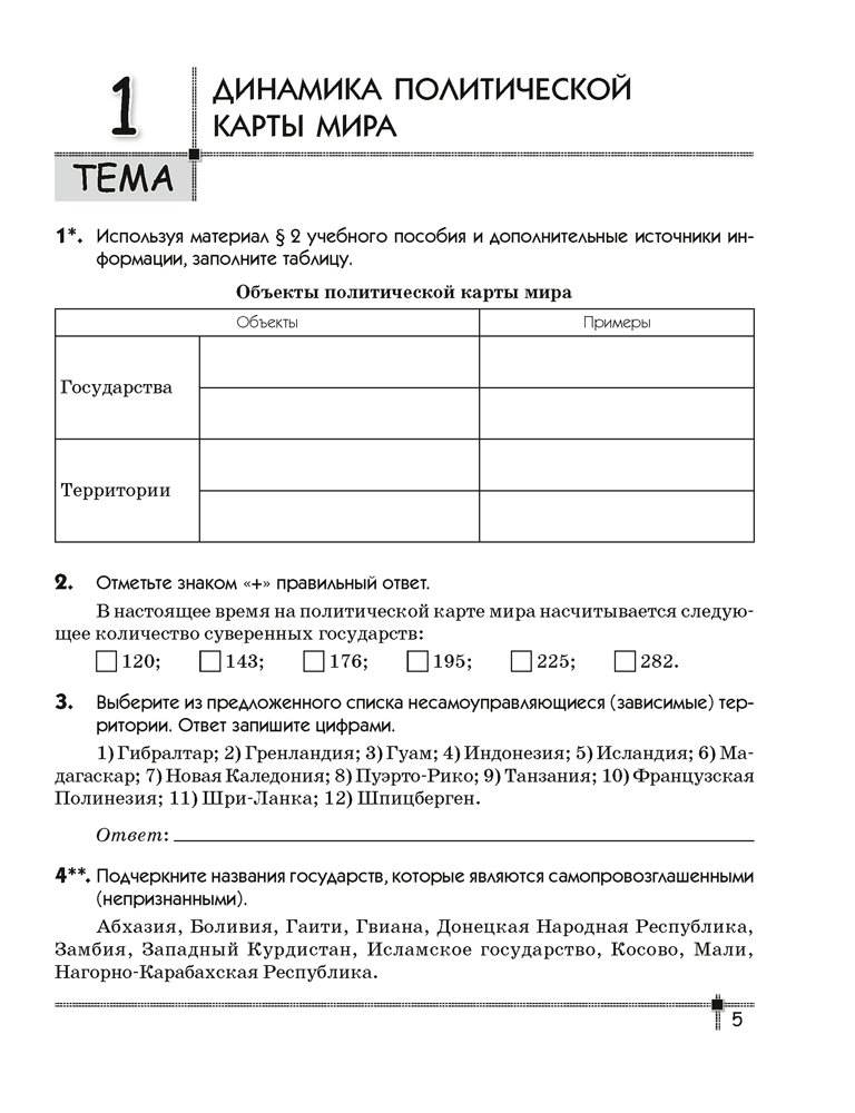 География. Социально-экономическая география мира. 10 класс. Тетрадь для практических работ и индивидуальных заданий