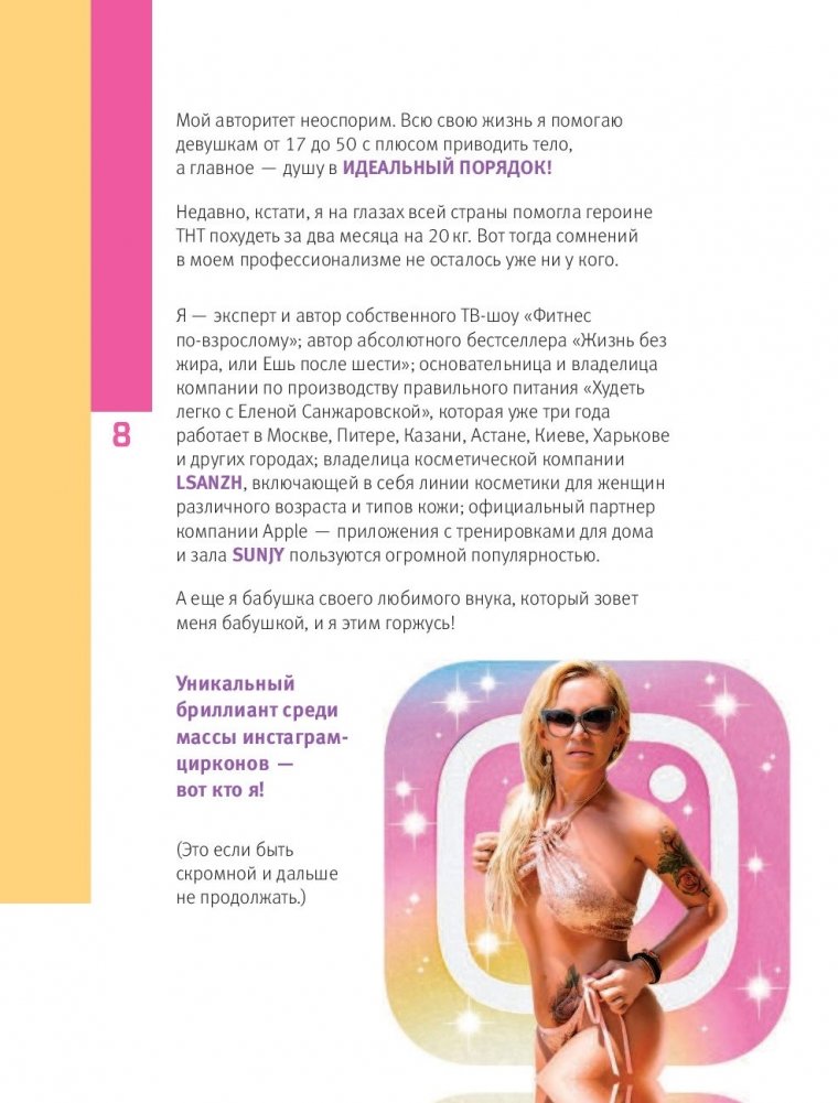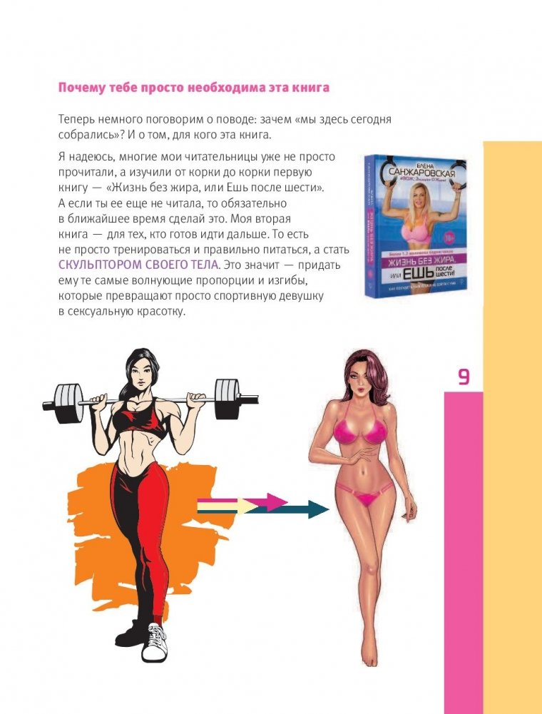 — авторскую программу тренировок, результативность которой доказана сотнями тысяч восхитительных женских тел, «построенных» по методике Елены Санжаровской;