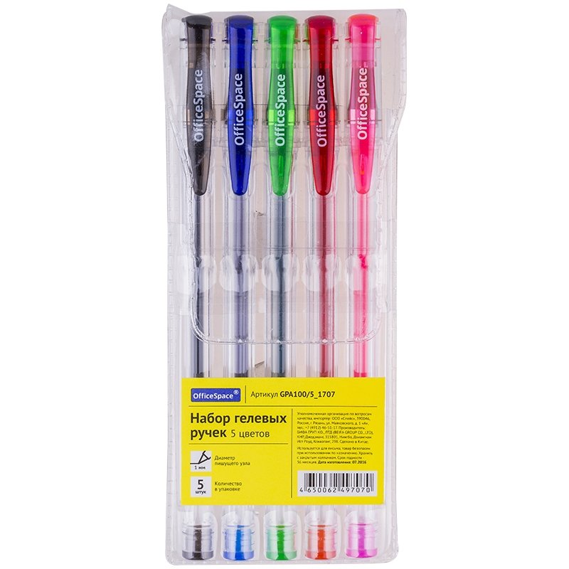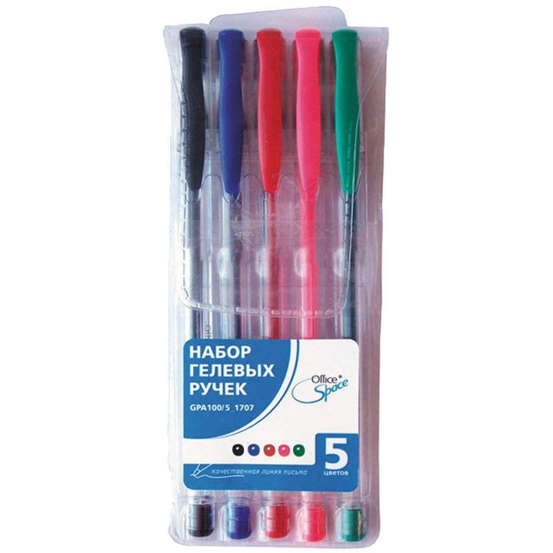 Набор гелевых ручек "OfficeSpace", 5 цветов, 1 мм
