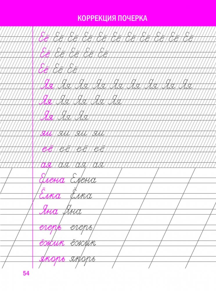Пособие является тренажёром, который обеспечит стойкое улучшение почерка в любом возрасте. Почерк человека неразрывно связан с высшей нервной деятельностью, и отработка графических навыков напрямую влияет на развитие интеллектуальной и эмоциональной сферы. Чем раньше начата работа по коррекции почерка и закреплению автоматических навыков каллиграфического письма, тем успешней будет учёба, улучшится память, внимательность и способность усваивать новые знания.