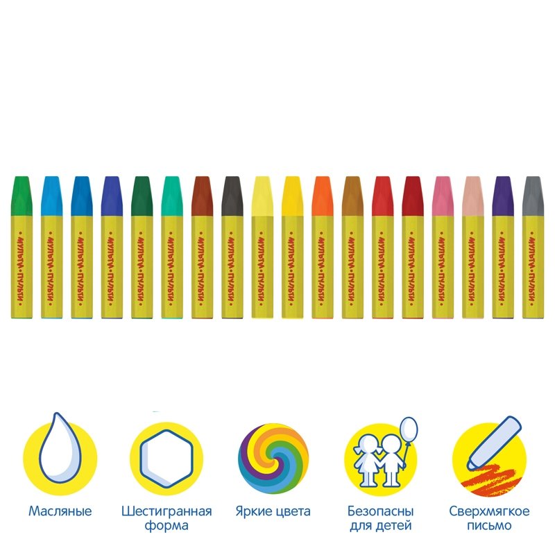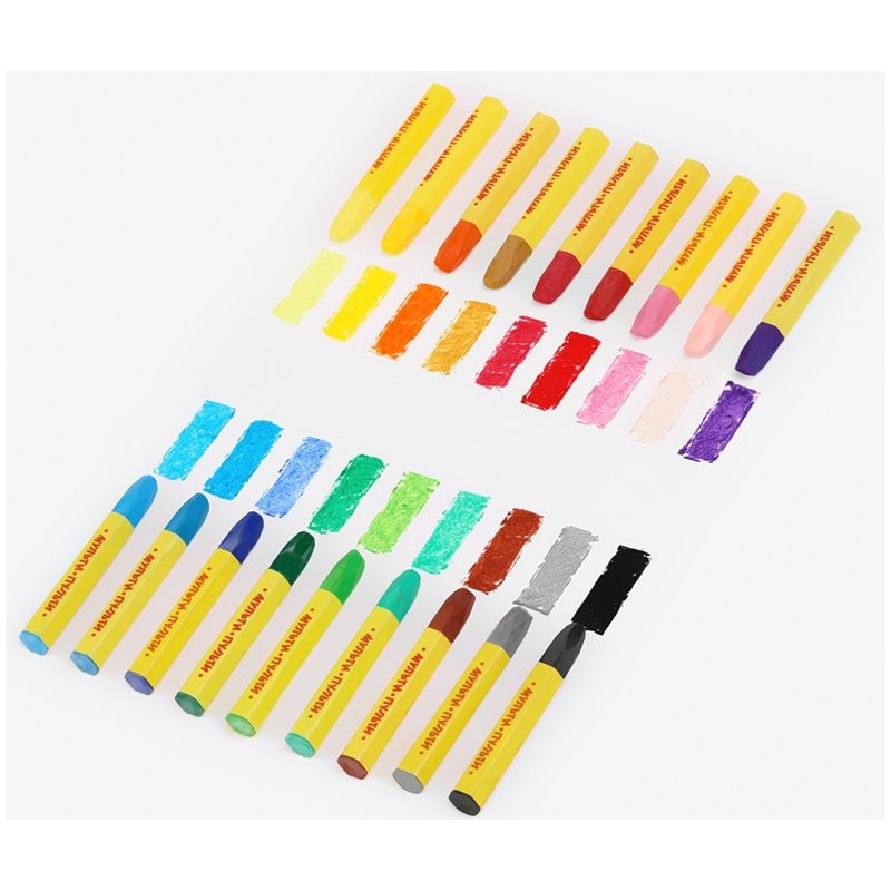 Мелки шестигранной формы на масляной основе легко наносятся на бумагу, картон, дерево и керамику. Подходят для детей старше 3-х лет.