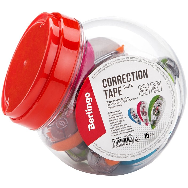 Прозрачный корпус позволяет видеть расход ленты. Подходит для машинописного или рукописного текста. Лента точно и плотно покрывает строку. Не требует времени на высыхание.