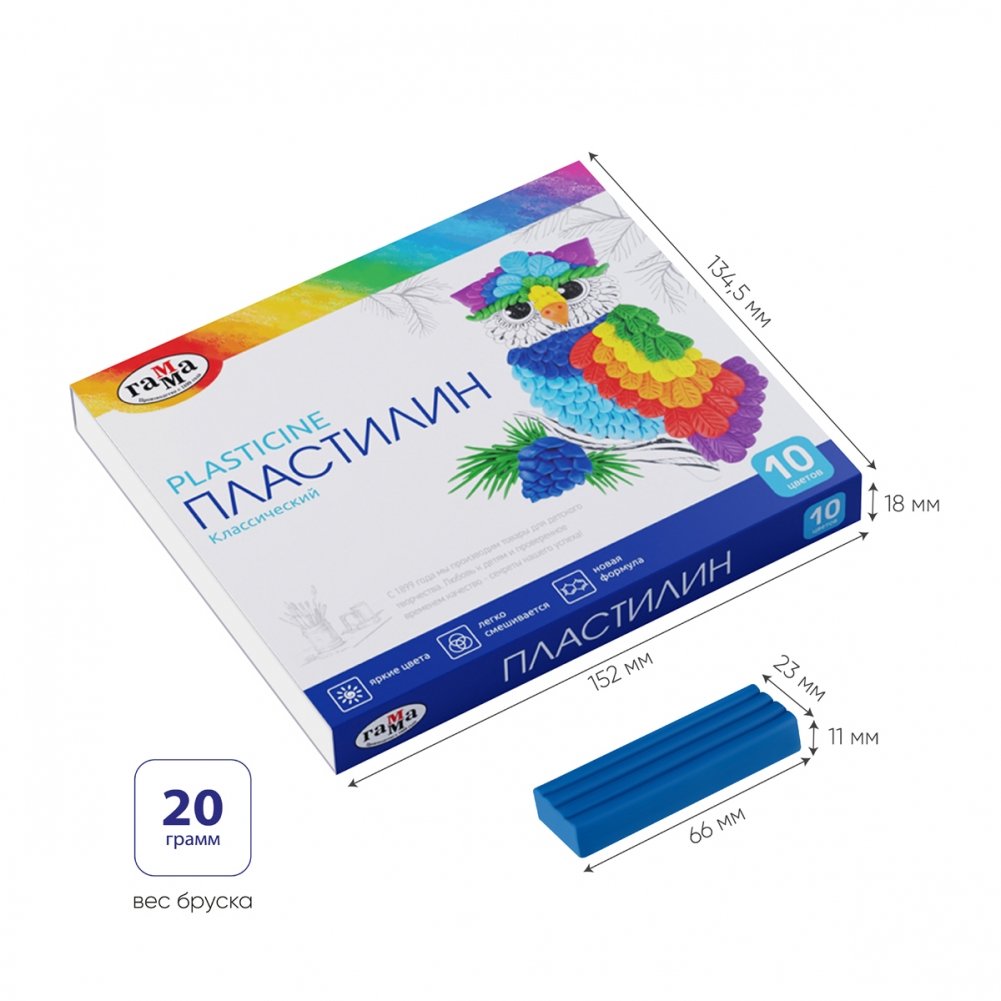 Пластилин Гамма "Классический", 10 цветов, 200г, со стеком, картон. упаковка