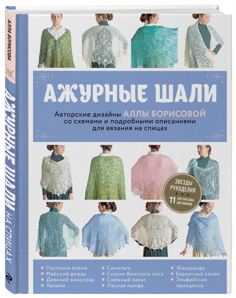 Вы держите в руках удивительную коллекцию авторских дизайнов российского мастера Аллы Борисовой, благодаря которой мода на ажурные шали ручной работы получила новое вдохновение и развитие. Тончайшие кружевные шали, связанные на спицах своими руками, — это, несомненно, показатель вкуса и мастерства любой вязальщицы, прекрасный дорогой подарок, изящное дополнение к современной одежде. Автор подробно рассказывает о технике вязания шалей, делится секретами мастерства, а потом предлагает связать уникальные шали, следуя подробным и понятным схемам и мастер-классам. Паутинка осени, Эльфийская принцесса, Снежный вальс... Романтичные названия проектов полностью оправданы их изяществом и оригинальностью. Удачи вам в творчестве!