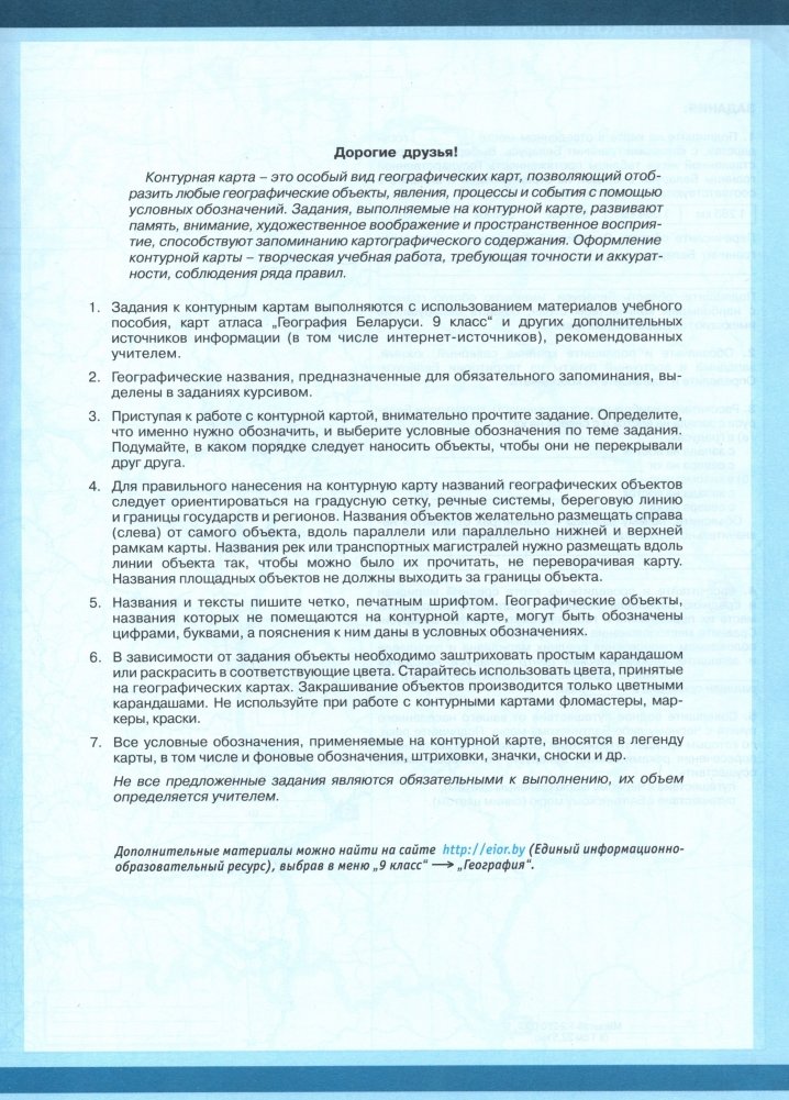 Контурные карты. География Беларуси. 9 класс
