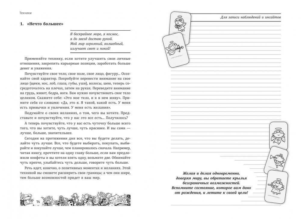 Все, что с нами происходит, — это отражение того, что есть у нас внутри. Если мы себе нравимся, то притягиваем события, которые нам приятны. Если что-то мы в себе не любим, то именно в этой области с нами начинают происходить неудачи. И именно поэтому так важно начать менять не внешнее, а работать с внутренними процессами. Хотите узнать, как менять этот образ будущего? Все просто — через перемены настоящего! В книге собраны лучшие трансформационные техники, которые дают прекрасные результаты. Книга приглашает вас совершить удивительное путешествие к самому себе, она поможет вам вернуть волшебную силу, которая дана вам от рождения. 56 трансформационных техник позволяют легко изменить вашу жизнь к лучшему. Выбор всегда за вами: вы можете оставить все как есть, а можете наполнить свою жизнь любовью, радостью и благополучием.