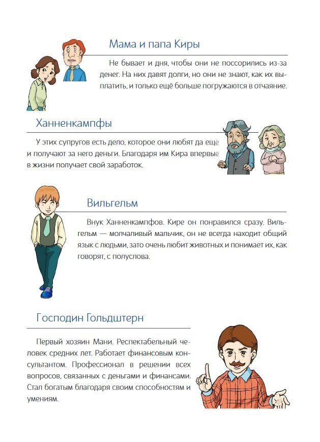Учись вместе с Кирой и её друзьями обращаться с деньгами и разбираться в финансовых вопросах! Однажды Кира спасает говорящего лабрадора Мани и благодаря ему открывает для себя увлекательный и сложный мир денег. Как же удалось разбогатеть обычной девочке, мечтающей о новеньком компьютере и поездке в Америку, но не имеющей на всё это денег?