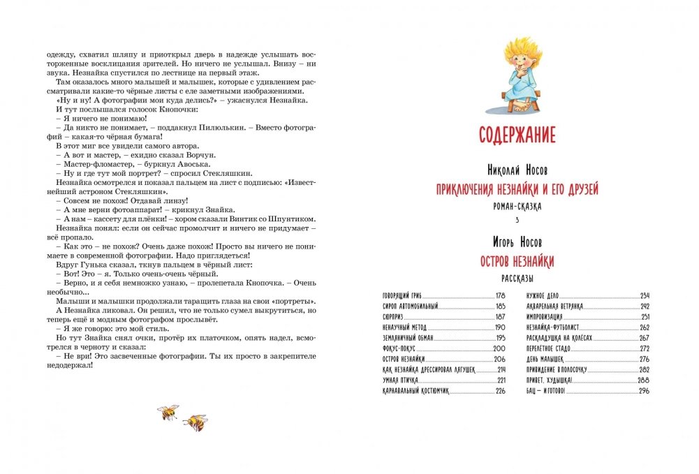 В книгу вошли «Приключения Незнайки и его друзей» – любимая многими поколениями история о малышах из Цветочного города, которые сооружают воздушный шар и попадают в Зелёный город, а также весёлые рассказы о Незнайке, его друге Гуньке, учёном Знайке, художнике Тюбике, докторе Пилюлькине и других обитателях Страны коротышек.