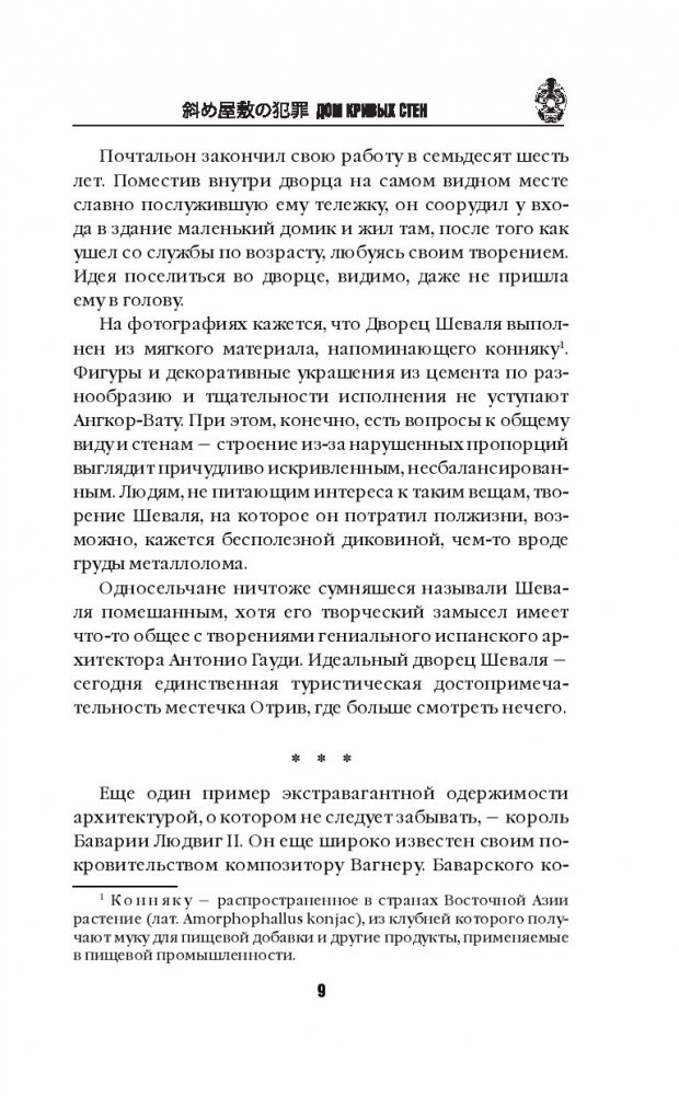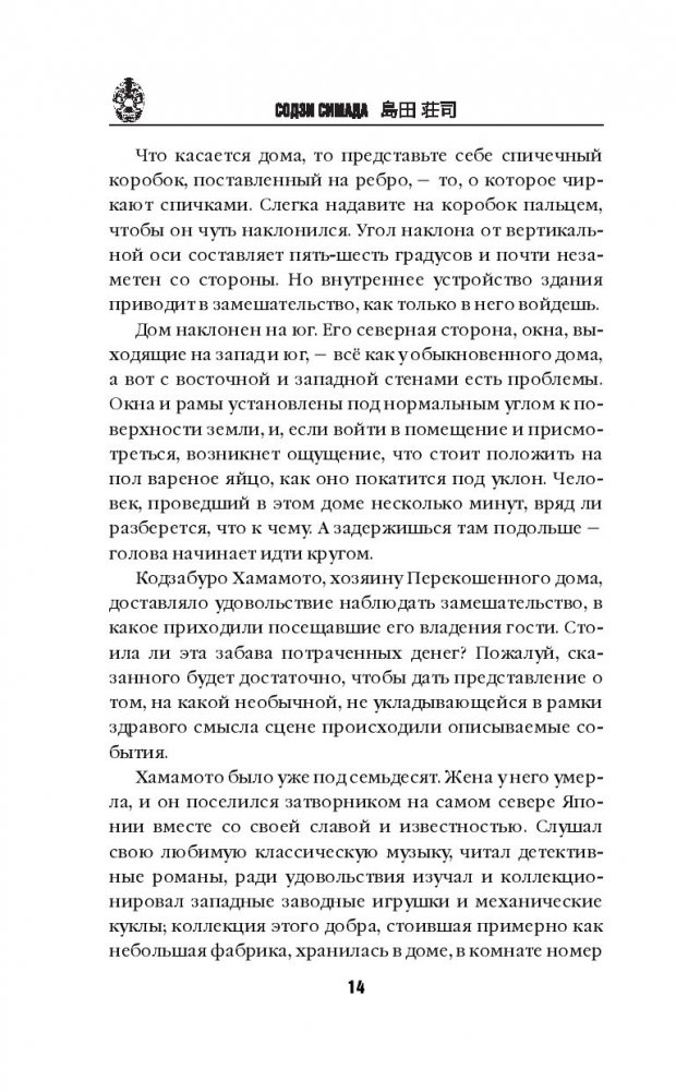 Япония, Рождество 1983 года. Богатый промышленник Кодзабуро Хамамото собрал в своем особняке друзей и знакомых. Гости поражены его домом — причудливой конструкцией с множеством комнат, наклонными полами и непонятно куда ведущими лестницами, с "падающей" высокой башней, напоминающей Пизанскую. Все они восторгаются фантазией хозяина и готовятся весело встретить Рождество. Но их ожиданиям не суждено сбыться. Потому что в сочельник в доме происходит убийство. От удара ножом погибает шофер одного из приглашенных. Срочно вызванные полицейские в полном замешательстве. Ведь убийство невозможно было совершить — все обстоятельства и условия против этого. Да и мотива ни у кого нет... Пока инспектор с помощниками ломают голову, а гости пребывают в прострации, в доме происходит второе убийство, еще более невероятное. Связавшись с начальством, ошеломленные полицейские узнают, что к ним едет человек, способный найти преступника. Что это астролог и гадатель из Токио Киёси Митараи. И что лишь он один способен разобраться в этой умопомрачительной головоломке... У вас будут все необходимые ключи. Но сможете ли вы найти отгадку прежде, чем это сделают сыщики?