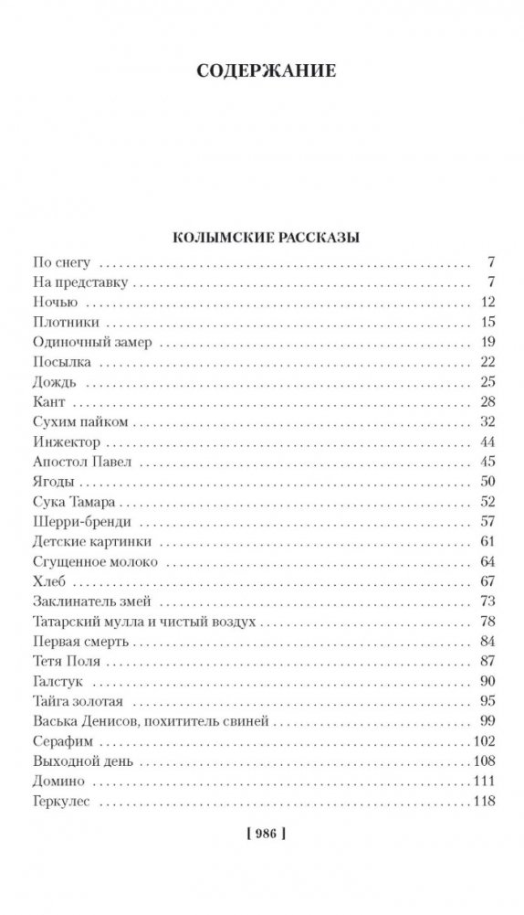 «Колымские рассказы» — главный труд В. Шаламова, повествующий о жизни заключенных исправительно-трудовых лагерей в 1930–1950 гг. Рассказы написаны в 1954–1973 гг. и в настоящем издании представлены в полном объеме — в шести циклах: «Колымские рассказы», «Левый берег», «Артист лопаты», «Очерки преступного мира», «Воскрешение лиственницы», «Перчатка, или КР-2». Первые публикации рассказов Шаламова состоялись в 1966–1976 гг. в американском русскоязычном «Новом журнале»; на родине писателя произведения увидели свет лишь после смерти автора в конце 1980-х годов.