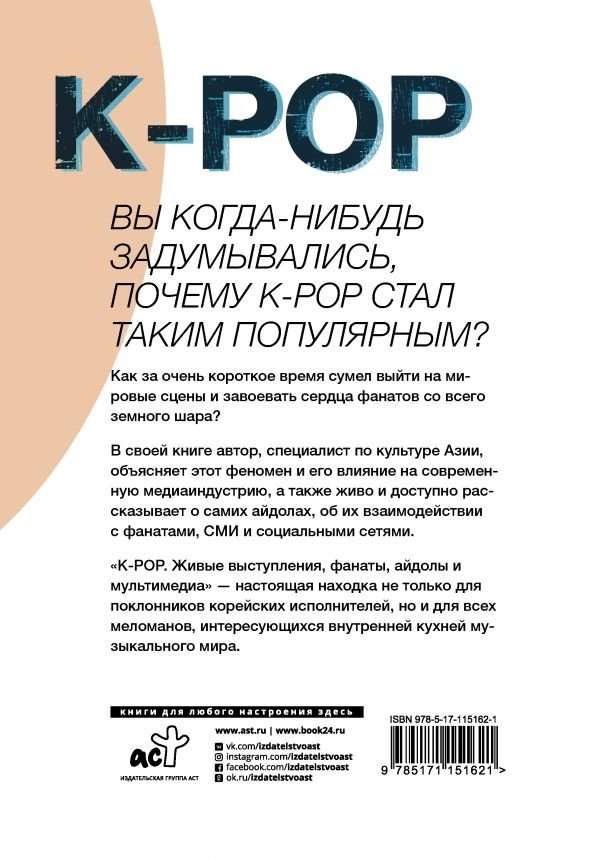 Вы когда-нибудь задумывались, почему K-pop стал таким популярным? Как за очень короткое время сумел выйти на мировые сцены и завоевать сердца фанатов со всего земного шара? В своей книге автор, специалист по культуре Азии, объясняет этот феномен и его влияние на современную медиаиндустрию, а также живо и доступно рассказывает о самих айдолах, об их взаимодействии с фанатами, СМИ и социальными сетями.«K-POP. Живые выступления, фанаты, айдолы и мультимедиа» — настоящая находка не только для поклонников корейских исполнителей, но и для всех меломанов, интересующихся внутренней кухней музыкального мира.