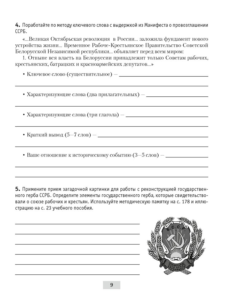 История Беларуси, 1917 г. — начало XXI в. 9 класс. Рабочая тетрадь. ГРИФ