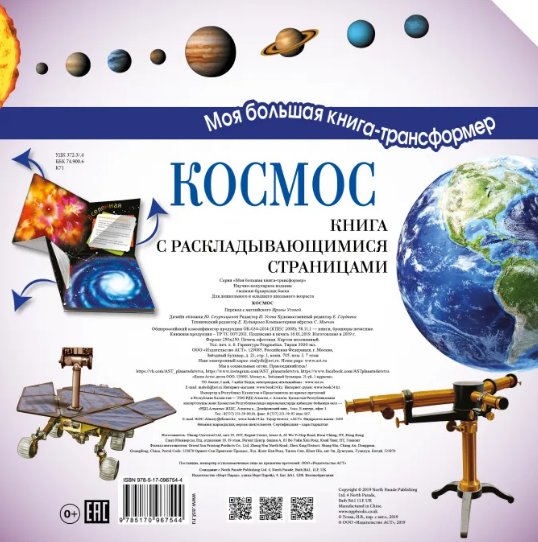 Никогда ещё новые знания не были такими увлекательными! Эта книга – настоящее путешествие в удивительный мир космоса. Каждая страница раскладывается – а внутри ещё больше красочных иллюстраций и интересных фактов о звёздах, планетах, галактиках и космических кораблях! Как и когда появилась солнечная система? Из чего состоят звёзды? С какой скоростью летают ракеты? Разверни страницу и узнаешь!