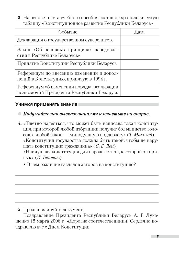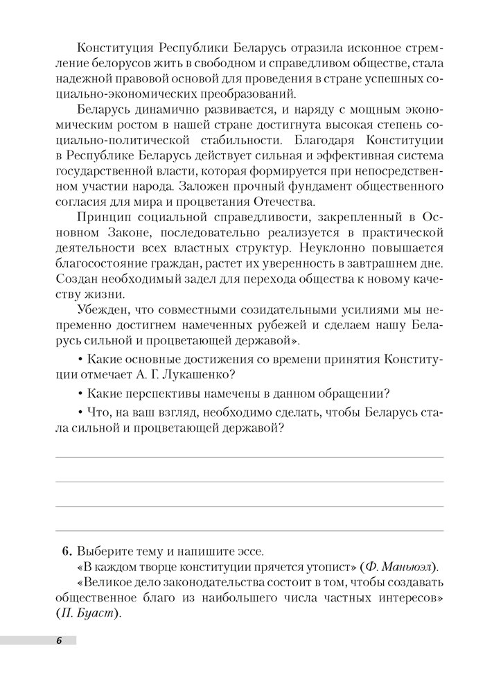 Рабочая тетрадь является частью учебно-методического комплекса по обществоведению для 11 класса и составлена в соответствии с учебной программой и учебным пособием под редакцией М. И. Вишневского. Рeцeнзенты: кандидат философских наук, доцент кафедры философии и методологии науки факультета философии и социальных наук Белорусского государственного университета А. П. Ждановский; учитель истории высшей категории, заместитель директора по учебной работе государственного учреждения образования «Средняя школа № 210 г. Минска» Г. А. Толочко