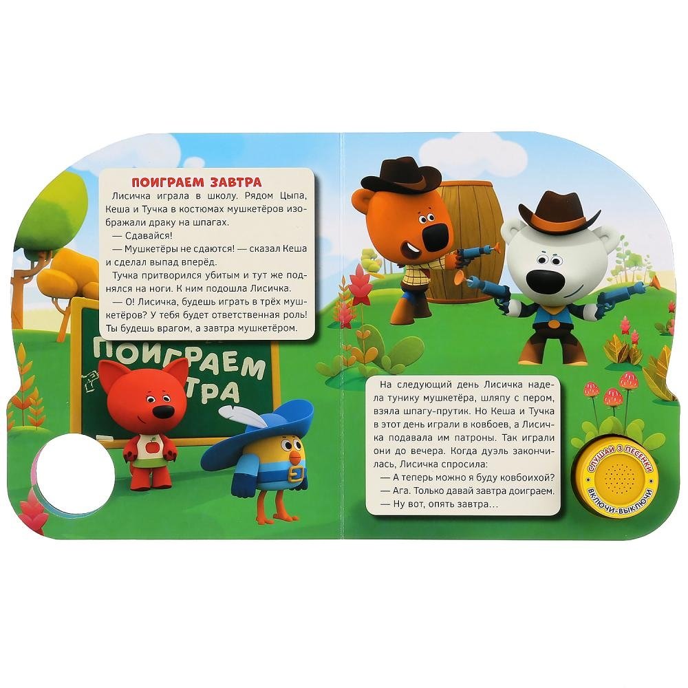 Компактная книга из прочного безопасного картона с кнопкой для прослушивания. Любимые авторы, народные фольклор, истории по мультфильма, и конечно, 3 песенки!