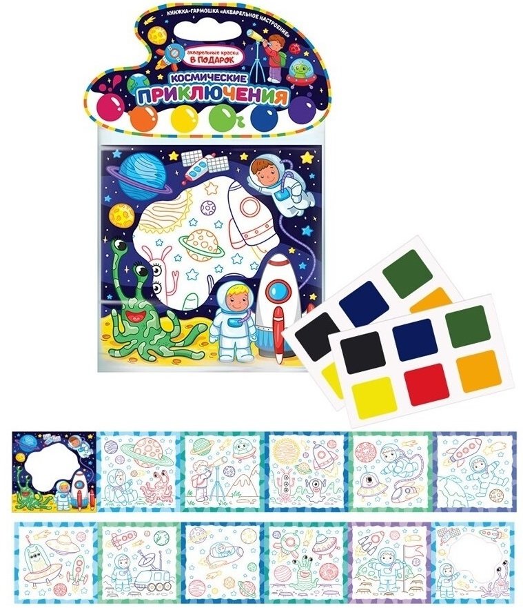 Космические приключения. Книжка-гармошка (акварельные краски в подарок)