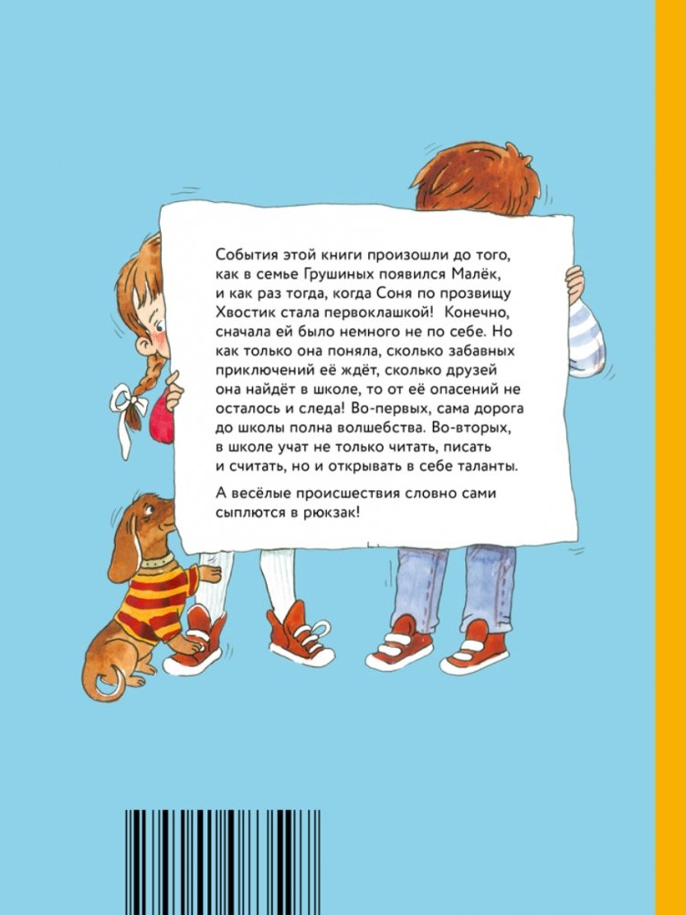 События этой книги произошли до того, как в семье Грушиных появился Малёк, и как раз тогда, когда Соня по прозвищу Хвостик стала первоклашкой! Конечно, сначала ей было немного не по себе. Но как только она поняла, сколько забавных приключений её ждёт, сколько друзей она найдёт в школе, то от её опасений не осталось и следа! Во-первых, сама дорога до школы полна волшебства. Во-вторых, в школе учат не только читать, писать и считать, но и открывать в себе таланты.