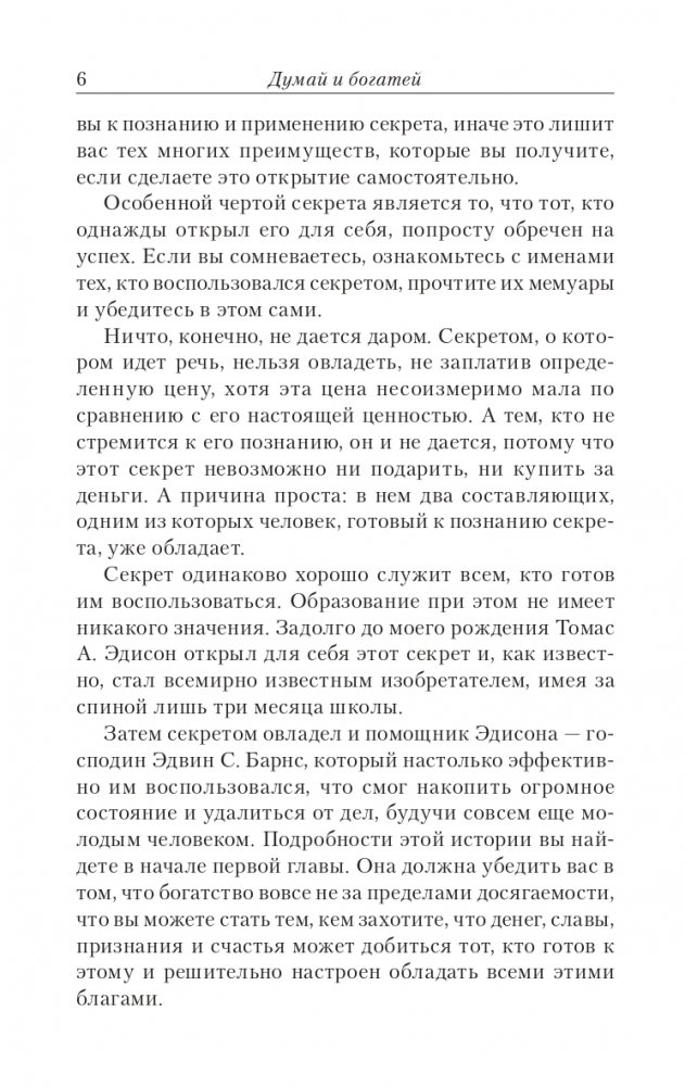 Генри Форд, Джон Рокфеллер-старший, Теодор Рузвельт, Джордж Паркер и тысячи других богатейших людей планеты открыли для себя великолепный мир достижений и благосостояния с помощью идей, изложенных в этом знаменитом бестселлере. Книга "Думай и богатей" давно получила статус классического учебника по достижению богатства. В каждой ее главе Наполеон Хилл упоминает о секрете добывания денег, пользуясь которым тысячи людей во всем мире приобрели, приумножили и продолжают приумножать свое состояние. Пусть это руководство к действию станет вашим личным проводником к достижению цели!