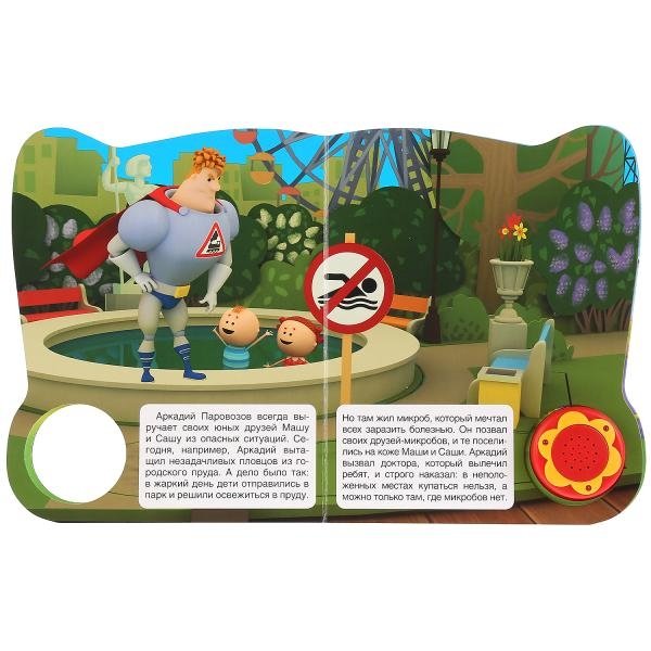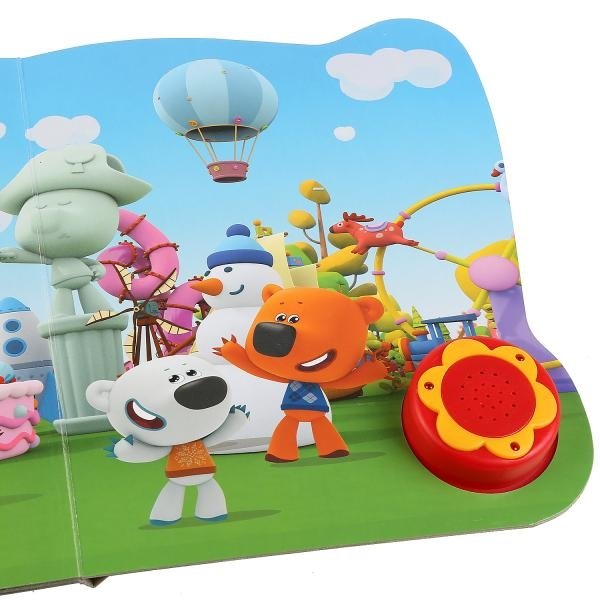 Компактная книга из прочного безопасного картона с кнопкой для прослушивания. Любимые авторы, народные фольклор, истории по мультфильмам, и конечно, 3 песенки!