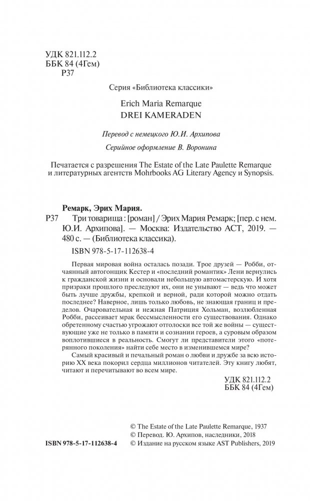 Самый красивый и печальный роман о любви и дружбе за всю историю ХХ века покорил сердца миллионов читателей. Эту книгу любят, читают и перечитывают во всем мире.