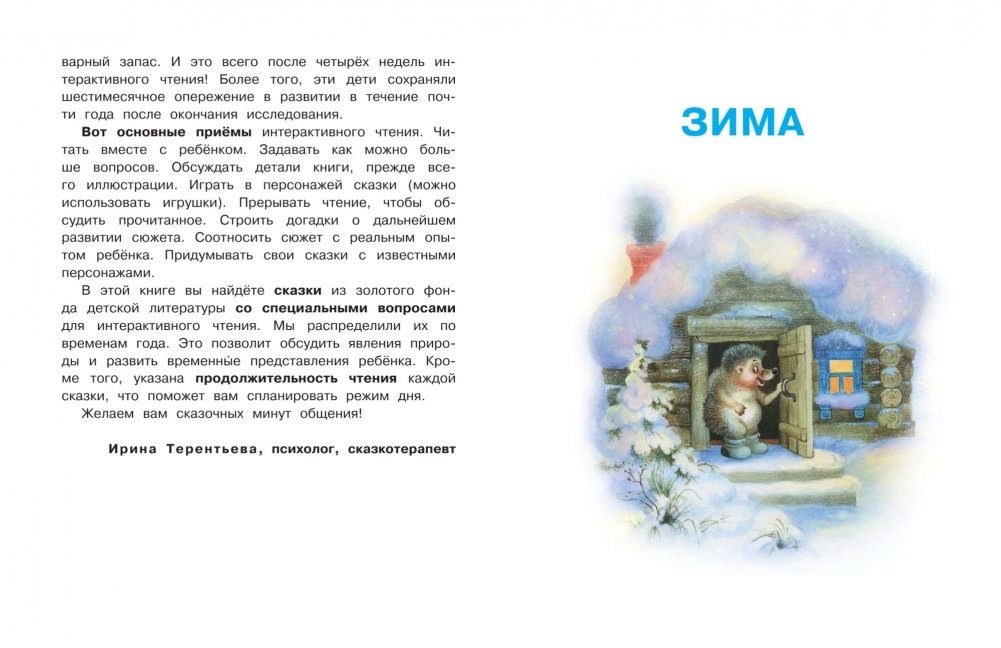 Книга поможет раскрыть перед ребёнком красоту родной природы и подарить ему самое ценное — живое общение с близкими людьми. Это не займёт много времени! Всего 10 минут в день посвятите интерактивному (развивающему) чтению и вы компенсируете недостаток общения, который часто возникает из-за напряжённого темпа жизни. Опытный детский психолог Ирина Терентьева подготовила вопросы для беседы с ребёнком к лучшим отечественным сказкам, вошедшим в сборник. Указана продолжительность чтения каждой сказки, чтобы вы могли спланировать режим дня. Читайте вместе и развивайтесь!
