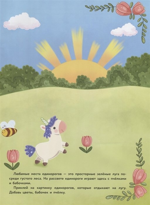 Давай отправимся в волшебную долину и познакомимся с единорогами. Они покажут тебе зелёные луга, радугу, высокие горы и шумящие водопады. А многоразовые наклейки сделают путешествие незабываемым!