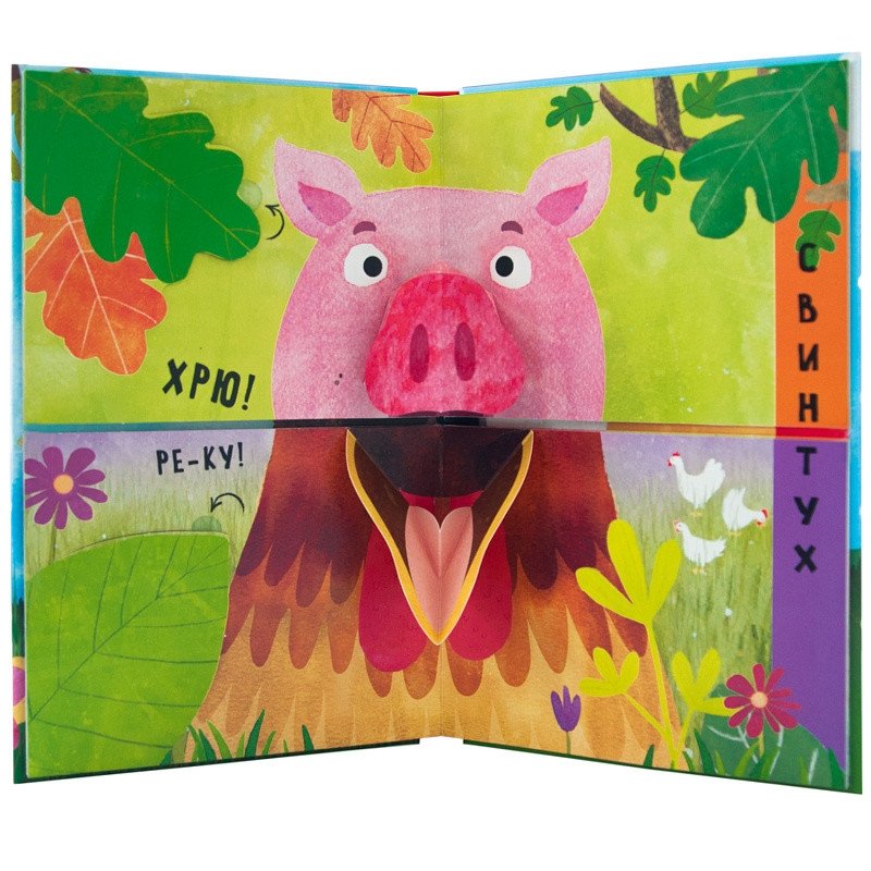 Волшебная книга «В деревне» с 3D-иллюстрациями из серии «Путаница» приведет ребенка в восторг. На его глазах оживут, открывая и закрывая объемные пасти, домашние животные. Слушая стихи, спрятанные под клапанами, маленький читатель узнает много интересного об обитателях деревни, а, соединяя страницы-половинки, сможет придумать новые, неизвестные науке виды животных. Кто это будет – коробака или свинтух?