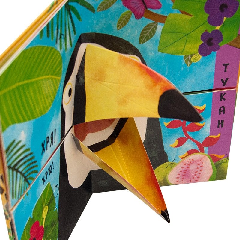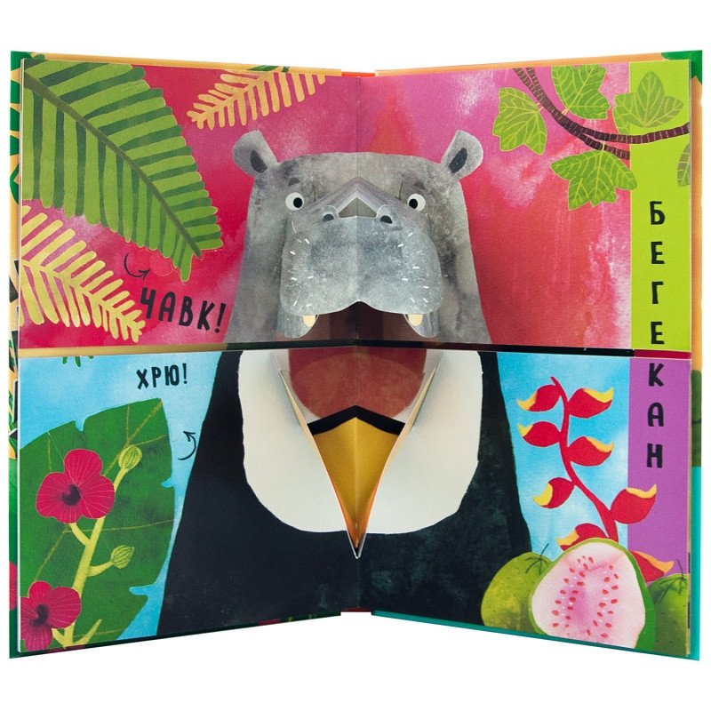 Волшебная книга «В джунглях» с 3D-иллюстрациями из серии «Путаница» приведет ребенка в восторг. На его глазах оживут, щелкая объемными челюстями и клювами, обитатели джунглей. Слушая стихи, спрятанные под клапанами, маленький читатель узнает много интересного о мире природы, а, соединяя страницы-половинки, сможет придумать новые, неизвестные науке виды животных. Кто это будет – кромомот или бегедил?