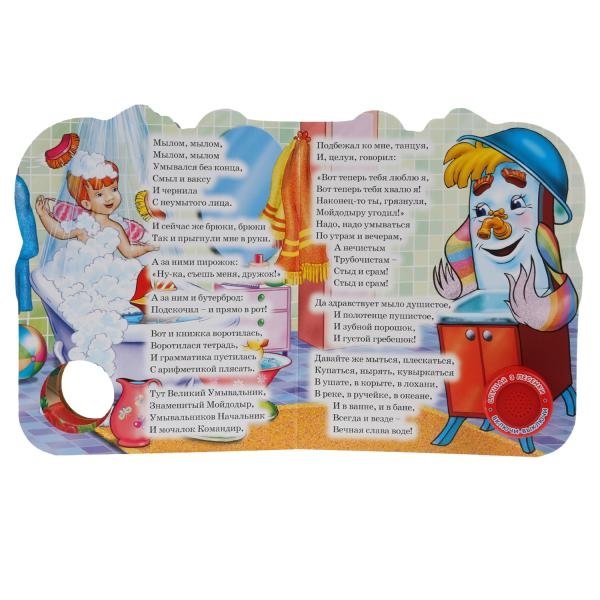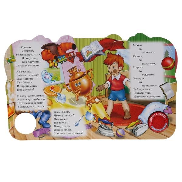 Компактная книга из прочного безопасного картона с кнопкой для прослушивания. Любимые авторы, народные фольклор, истории по мультфильма, и конечно, 3 песенки!