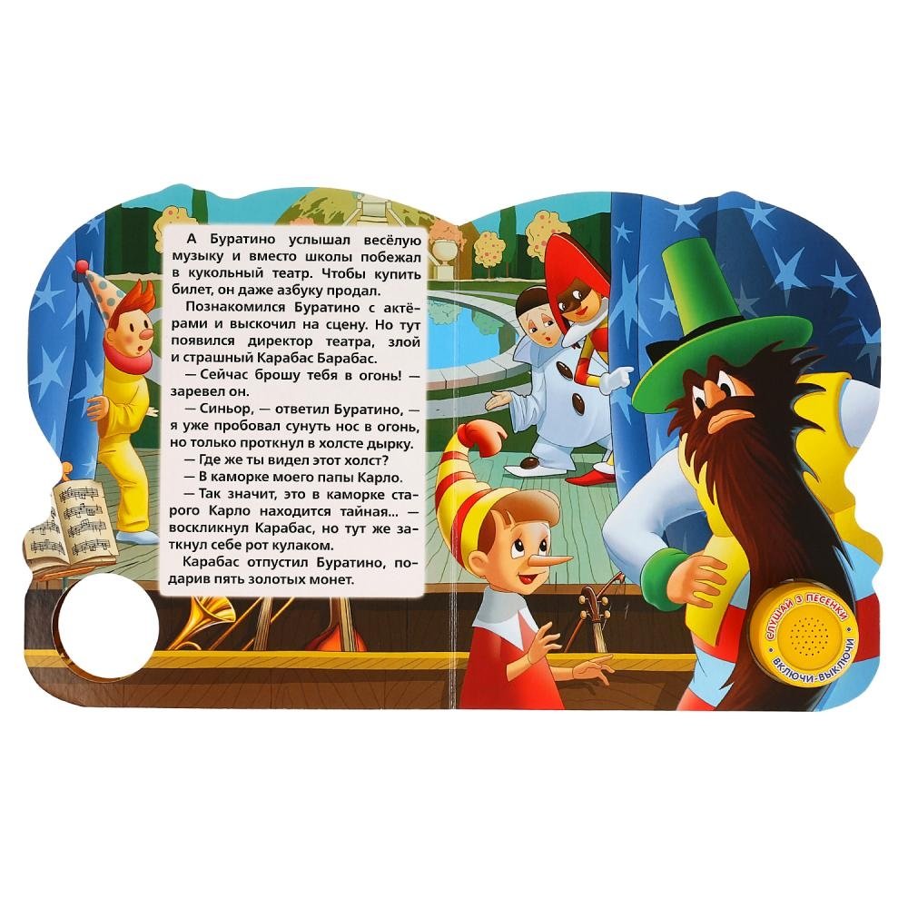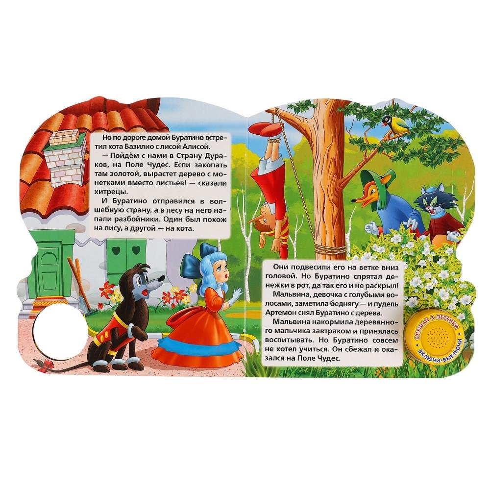 Компактная книга из прочного безопасного картона с кнопкой для прослушивания. Любимые авторы, народные фольклор, истории по мультфильма, и конечно, 3 песенки!