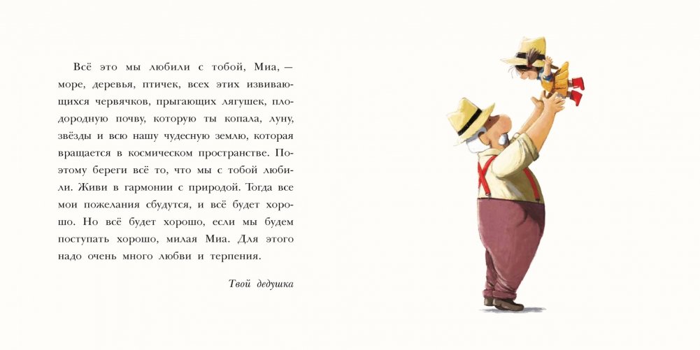 Каждый Новый год Миа и вся её семья читают письмо, которое прислал ей когда-то дедушка. В этом письме он желает своей маленькой внучке, чтобы мир, в котором она будет жить, был по-настоящему прекрасным. Он с любовью вспоминает о том, как вместе они работали на грядках, наблюдали за птичками и лягушатами и как хорошо им было в весеннем саду. Но чтобы всё, что они так любят, не погибло, дедушка просит девочку позаботиться об окружающем мире.