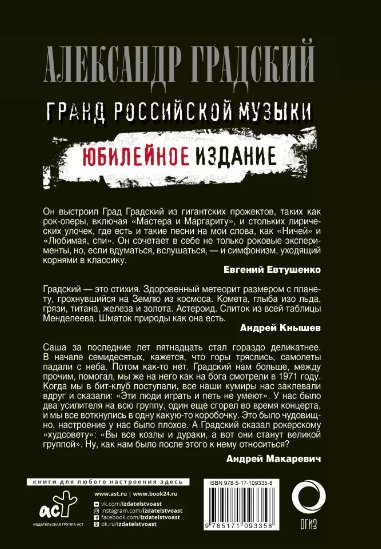 Выход книги приурочен к юбилею Александра Градского. Масштабы «родителя русского рок-н-ролла» трудно переоценить, о чем бы ни шла речь: наставник, композитор, личность. Подтверждение тому можно найти в беседах и интервью, собранных в этом издании. Андрей Макаревич, Евгений Евтушенко, Александр Буйнов, Евгений Маргулис и другие, не менее известные нам персонажи, поведают о случаях, пересечениях, курьезах, о нем. А Градский, в свою очередь, о других, с присущей ему искрометностью.