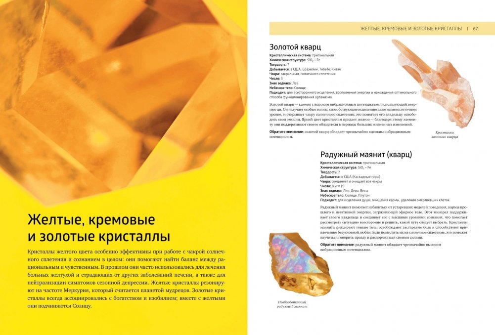 В богатствах земных недр заключена древняя сила, которую можно научиться использовать себе во благо. В великолепно иллюстрированной книге всемирно известного астролога Джуди Холл систематизированы свойства и особенности натуральных и искусственно выращенных кристаллов, в том числе драгоценных и полудрагоценных камней. Каждая статья содержит информацию о кристаллической системе, химической формуле, твердости, ареале распространения, источниках происхождения того или иного камня, соответствующей чакре, подходящем знаке зодиака и небесном теле. Особое внимание уделяется применению кристаллов в лечебных целях. Иллюстрации ярко визуализируют разницу в оттенках цвета и огранке кристаллов, от чего зависят особенности их свойств.