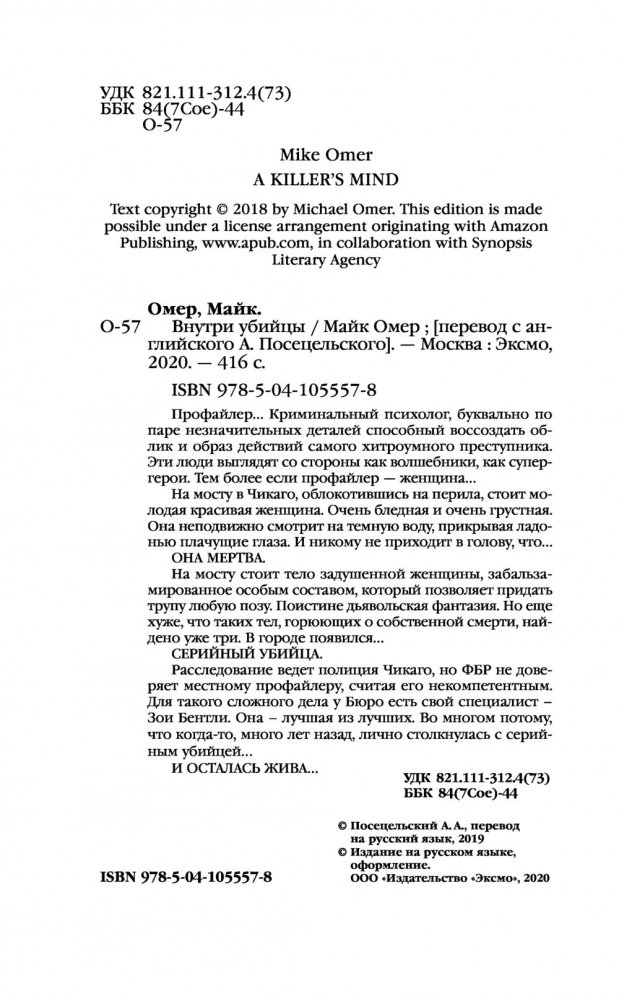 Расследование ведет полиция Чикаго, но ФБР не доверяет местному профайлеру, считая его некомпетентным. Для такого сложного дела у Бюро есть свой специалист – Зои Бентли. Она – лучшая из лучших. Во-многом потому, что когда-то, много лет назад, лично столкнулась с серийным убийцей – И ОСТАЛАСЬ ЖИВА…