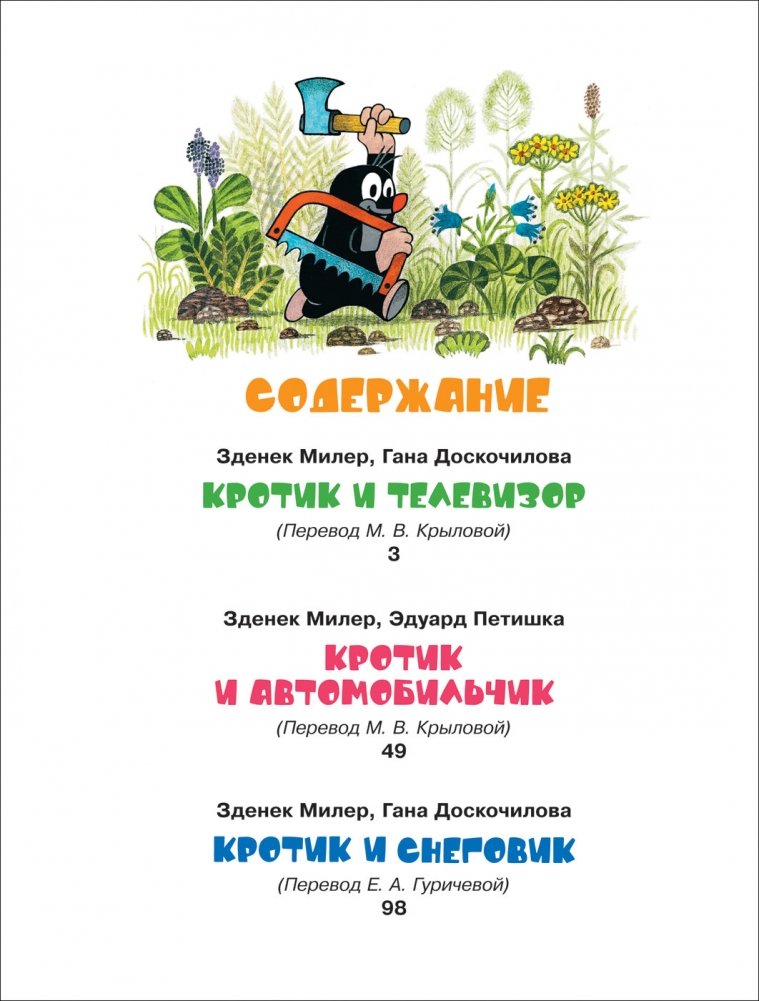 Веселый добрый Кротик уже очень давно завоевал сердца многих детей и взрослых по всему миру. В эту книгу вошли три забавные, трогательные сказки о маленьком Кротике и его друзьях жителях Сказочного леса: «Кротик и телевизор», «Кротик и автомобильчик», «Кротик и Снеговик».
