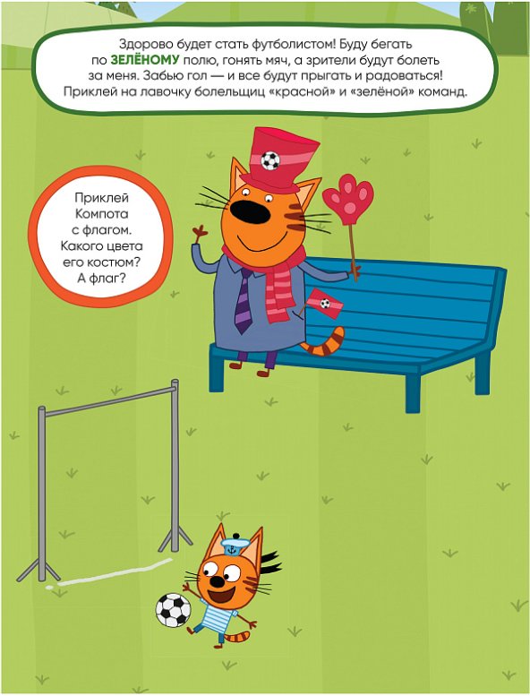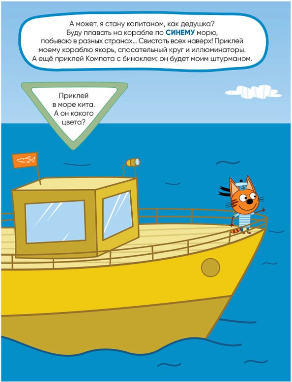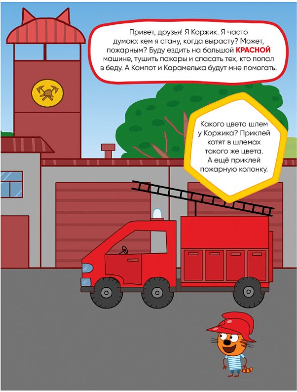 Благодаря удобному формату заниматься по книге «Профессии» из серии «Три кота. Развивающие наклейки» можно где угодно: дома, в поездке, гостях и на прогулке.