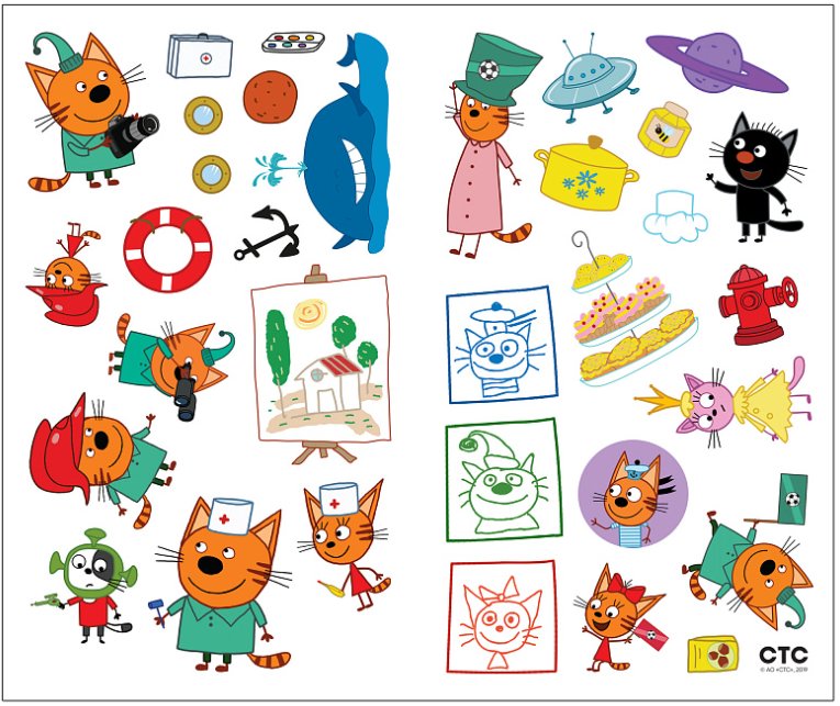Миу-миу-миу! А ваш ребенок любит мультсериал «Три кота»? Тогда ему обязательно понравится эта красочная книжка с многоразовыми наклейками, рассказывающая о профессиях.