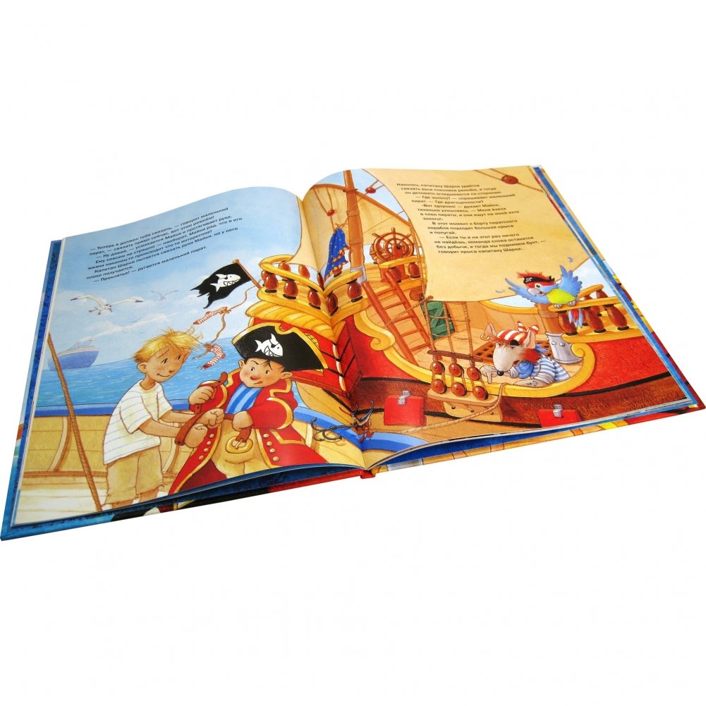 — На абордаж! — кричит капитан Шарки и прыгает на палубу яхты, где сидит и скучает мальчик по имени Мáйки. Наконец-то в жизни Майки происходит что-то интересное: он оказывается на настоящем пиратском корабле в компании маленького пирата и его команды!
