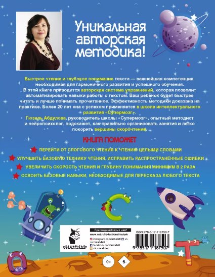 В этой книге приводится авторская система упражнений, которая позволит автоматизировать навыки работы с текстом. Ваш ребёнок будет быстрее читать и лучше понимать прочитанное. Эффективность методики доказана на практике. Более 20 лет она с успехом применяется в школе интеллектуального развития «Супермозг».
