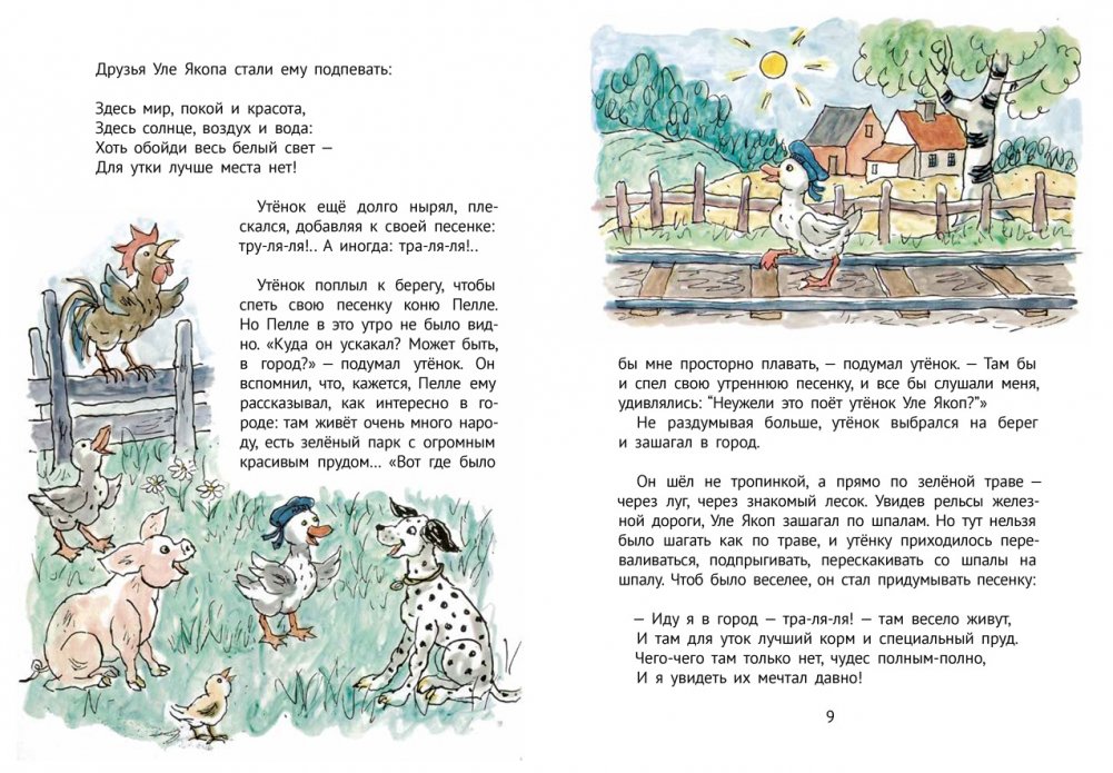 Утёнок Уле Якоп живёт в деревне, обожает купаться и распевать песни. А ещё он очень любопытный — и однажды решает отправиться посмотреть на город. Какие опасности и приключения