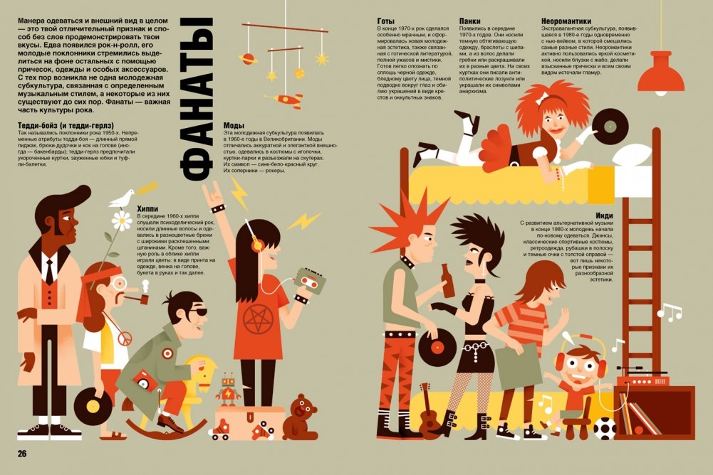 «Иллюстрированная история рока» — книга про эту революцию. Она расскажет о группах и исполнителях, о самых важных песнях и альбомах, о фестивалях и фанатах, о звукозаписывающих компаниях, музыкальных журналах и передачах — короче, обо всем!