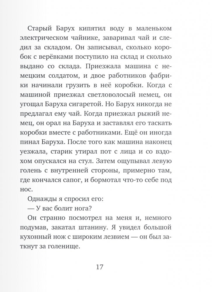 Вымершая территория, о которой вы здесь прочтете, это и есть гетто. Но это не Варшавское гетто, существовали тогда и другие. Но и в этом гетто тоже нечего есть тем людям, которые в нем еще остаются. Алекс, герой моего рассказа, скрывается в развалинах разрушенного бомбежкой дома почти с самого начала войны, хотя другие дома вокруг уцелели и полны разного добра. Этот дом мало чем отличается от пустынного острова, но именно в нем Алекс дожидается возвращения своего отца. Ждать приходится так долго, что Алекс уже почти перестает верить в его возвращение. Он вынужден долгие месяцы заботиться о себе сам и добывать все необходимое для жизни в окрестных домах, подобно Робинзону Крузо, который соорудил и собрал необходимые ему вещи из обломков кораблей, выброшенных бурей на берег. Разница в том, что Алекс не мог ничего выращивать на своем «острове», потому что вынужден был скрываться, и питьевой воды ему тоже негде было взять. Но Алекс мог наблюдать остальной мир через бинокль из своего убежища, потому что развалины дома, где он прятался, возвышались над стеной, ограждавшей безлюдное гетто. Сквозь линзы бинокля он видел людей, которым не приходится скрываться так, как ему, хотя они и должны подчиняться жестоким законам немецкой оккупации. Он видел своих сверстников, идущих в школу каждое утро, и хотя казалось, что они совсем рядом, они были от него так же далеко, как ближайшая обитаемая земля от острова Робинзона Крузо. У Алекса не было никого, подобного Пятнице, только маленький белый мышонок — Снежок. Впрочем, нет, у него было еще кое-что: у него была надежда. Потому что он ждал в своем укрытии отца…