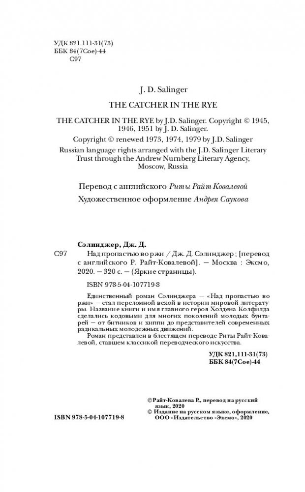 Название книги и имя главного героя Холдена Колфилда сделались кодовыми для многих поколений молодых бунтарей от битников и хиппи до представителей современных радикальных молодежных движений.